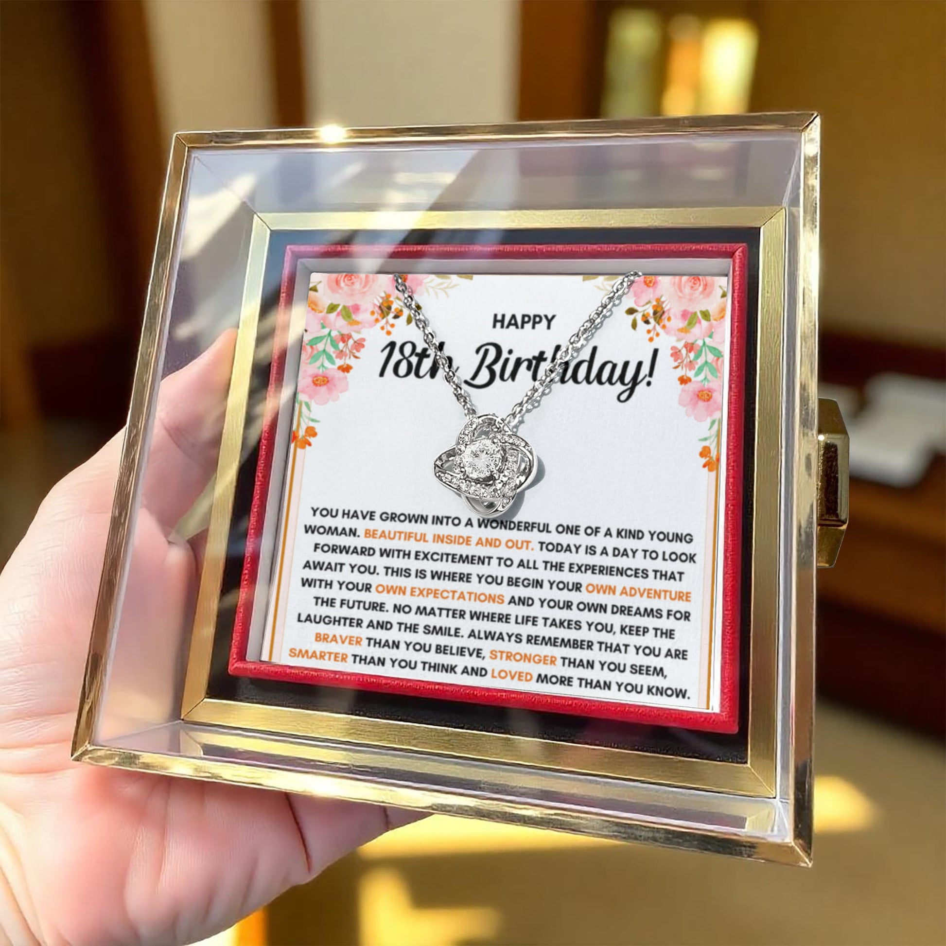 18TH BIRTHDAY DREAMS LOVE KNOT NECKLACE ROSE BOX GIFT SET