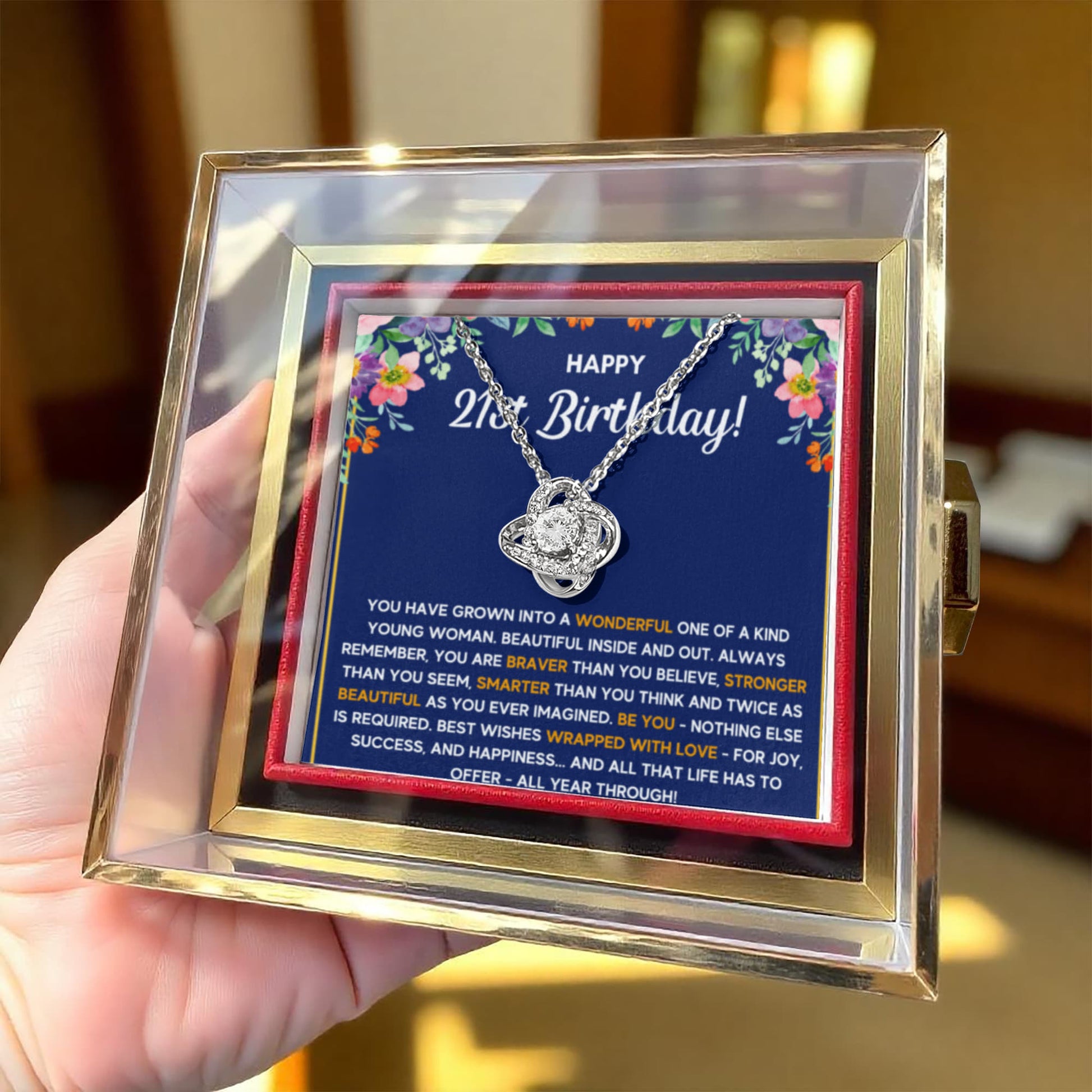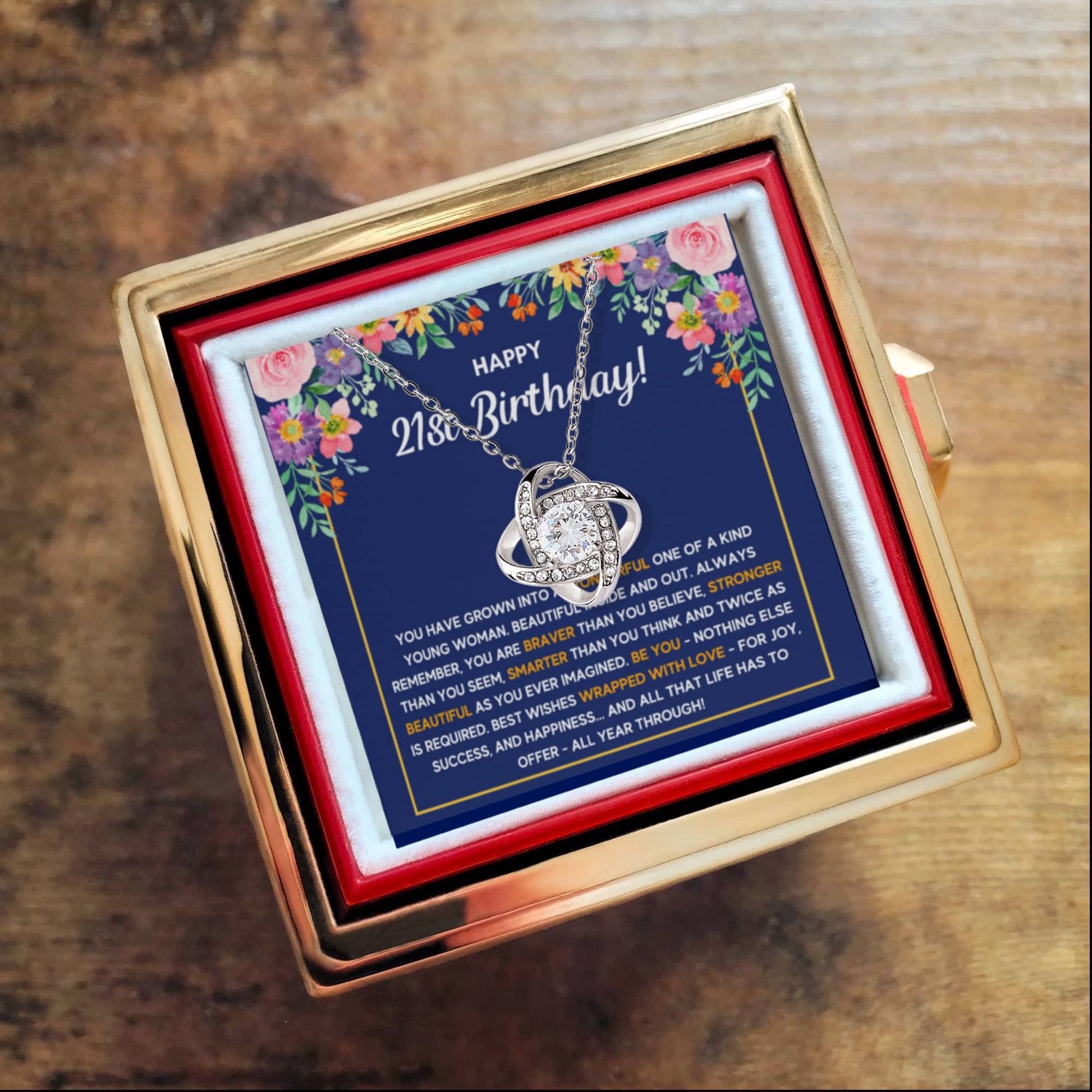 21ST BIRTHDAY WRAPPED LOVE KNOT NECKLACE ROSE BOX GIFT SET