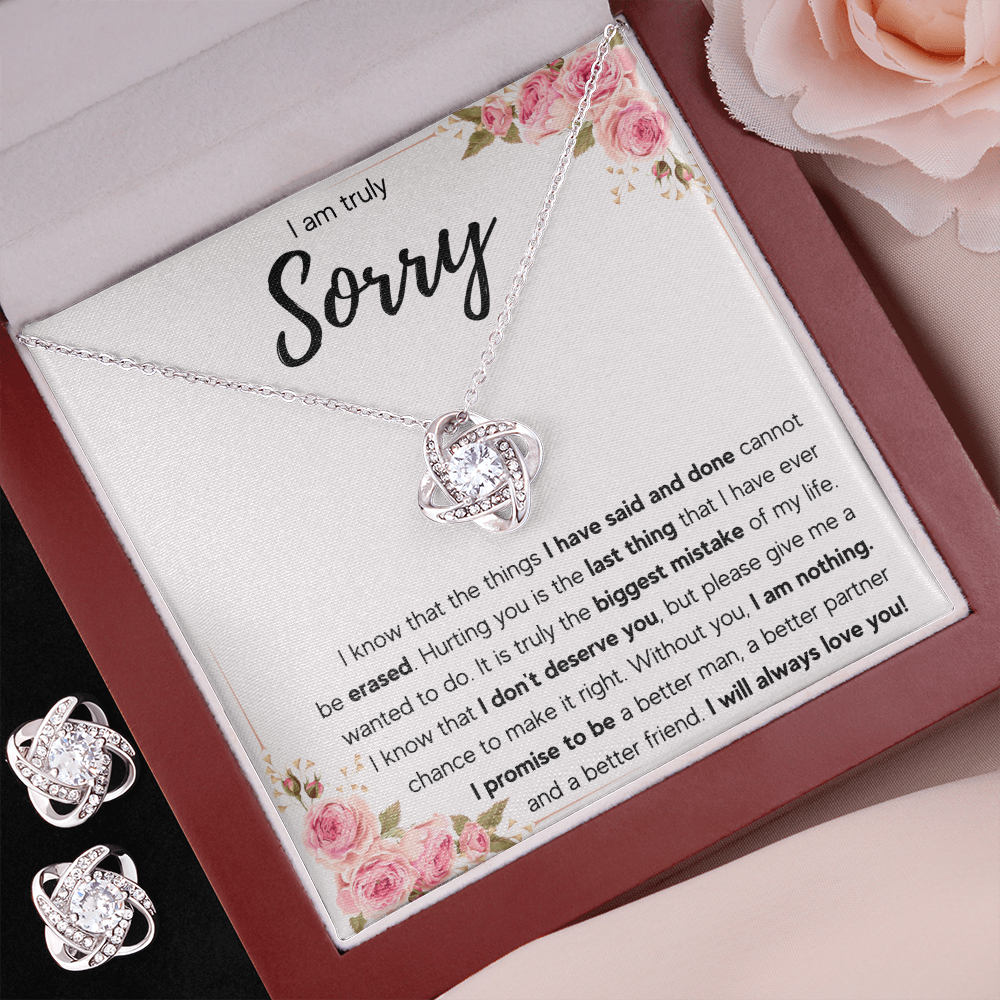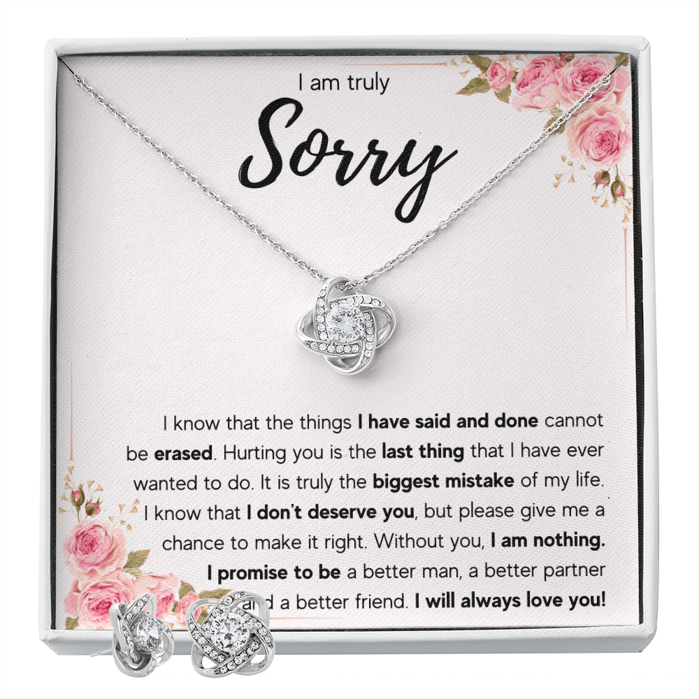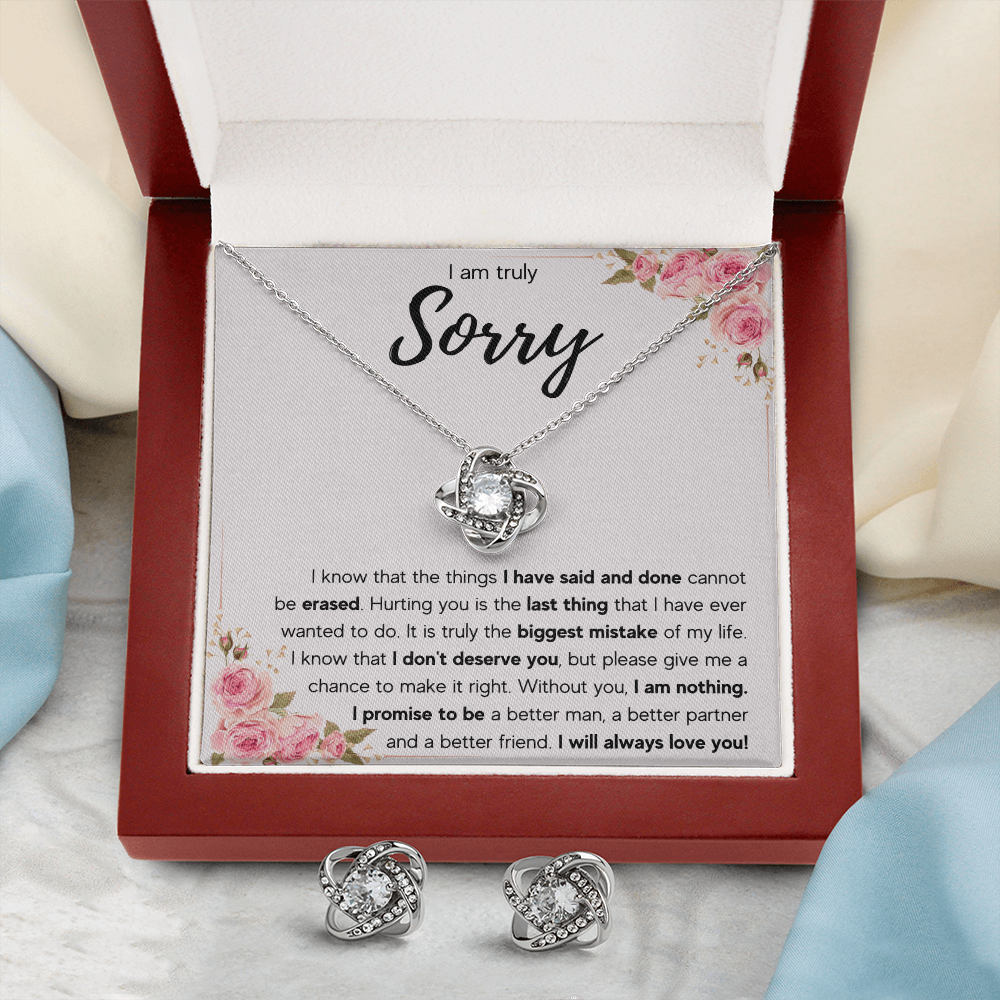 I'M SORRY MISTAKE LOVE KNOT NECKLACE AND EARRINGS