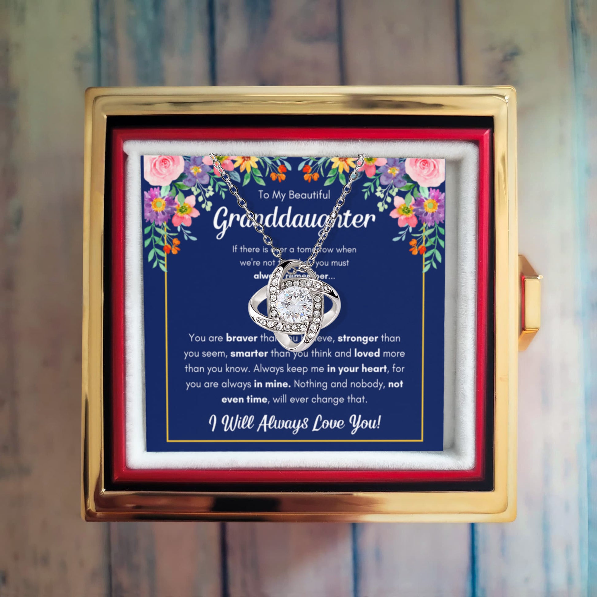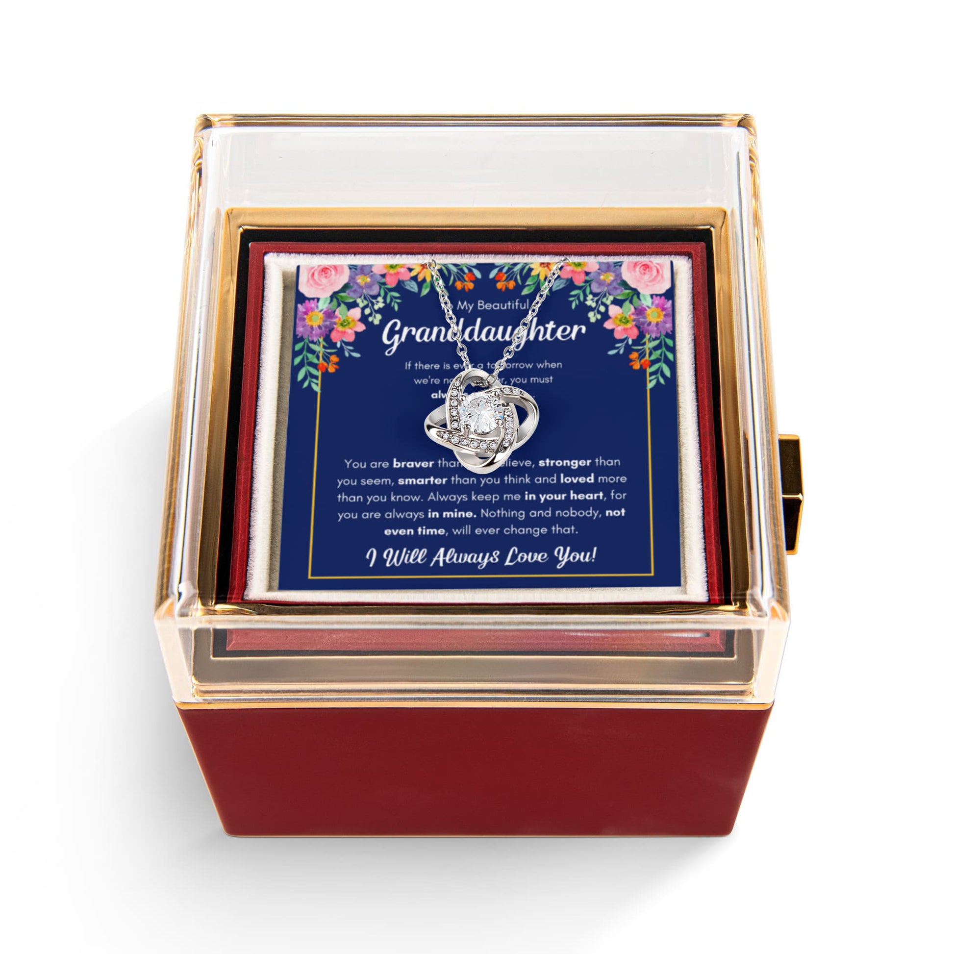 TO MY GRANDDAUGHTER BRAVER LOVE KNOT NECKLACE ROSE BOX GIFT SET