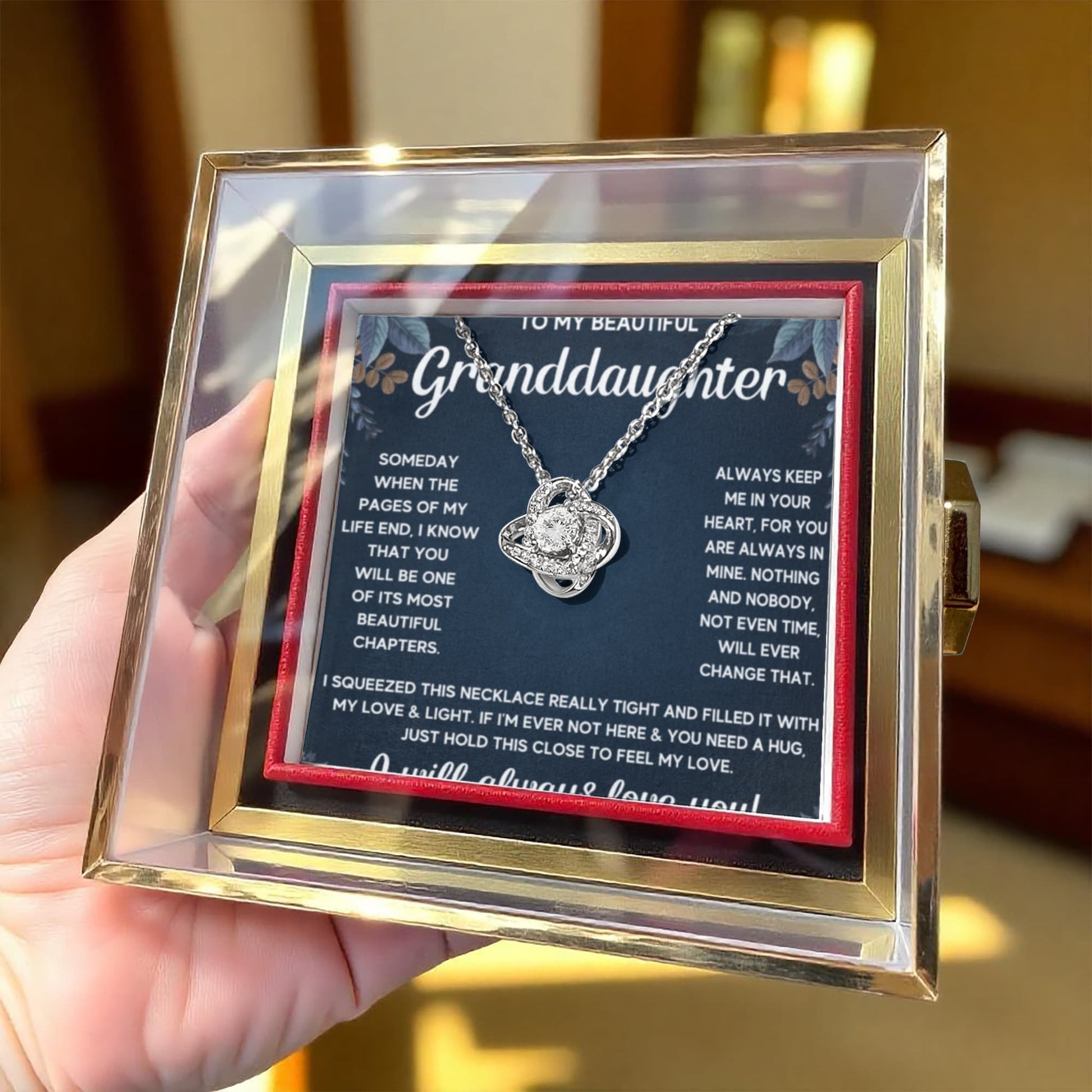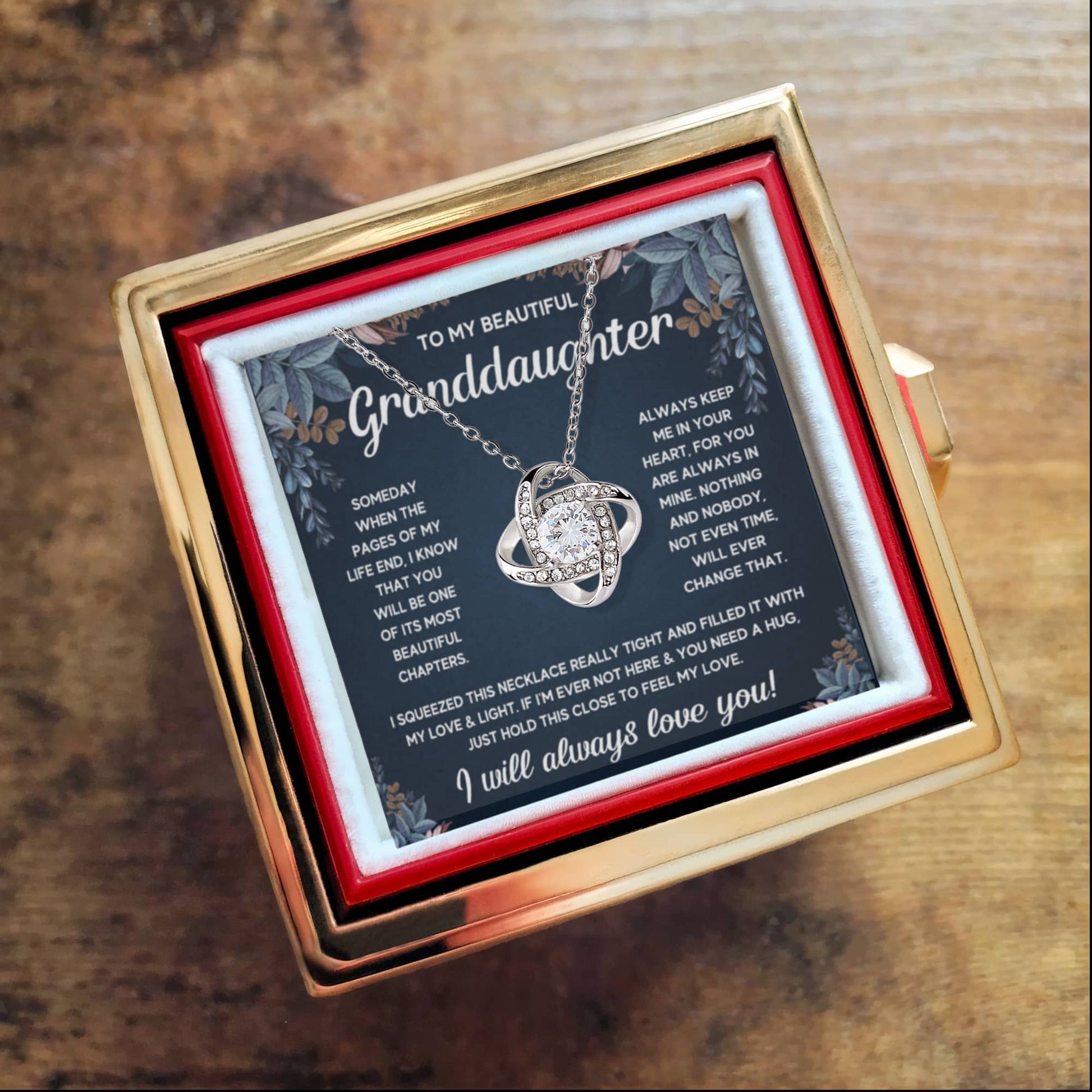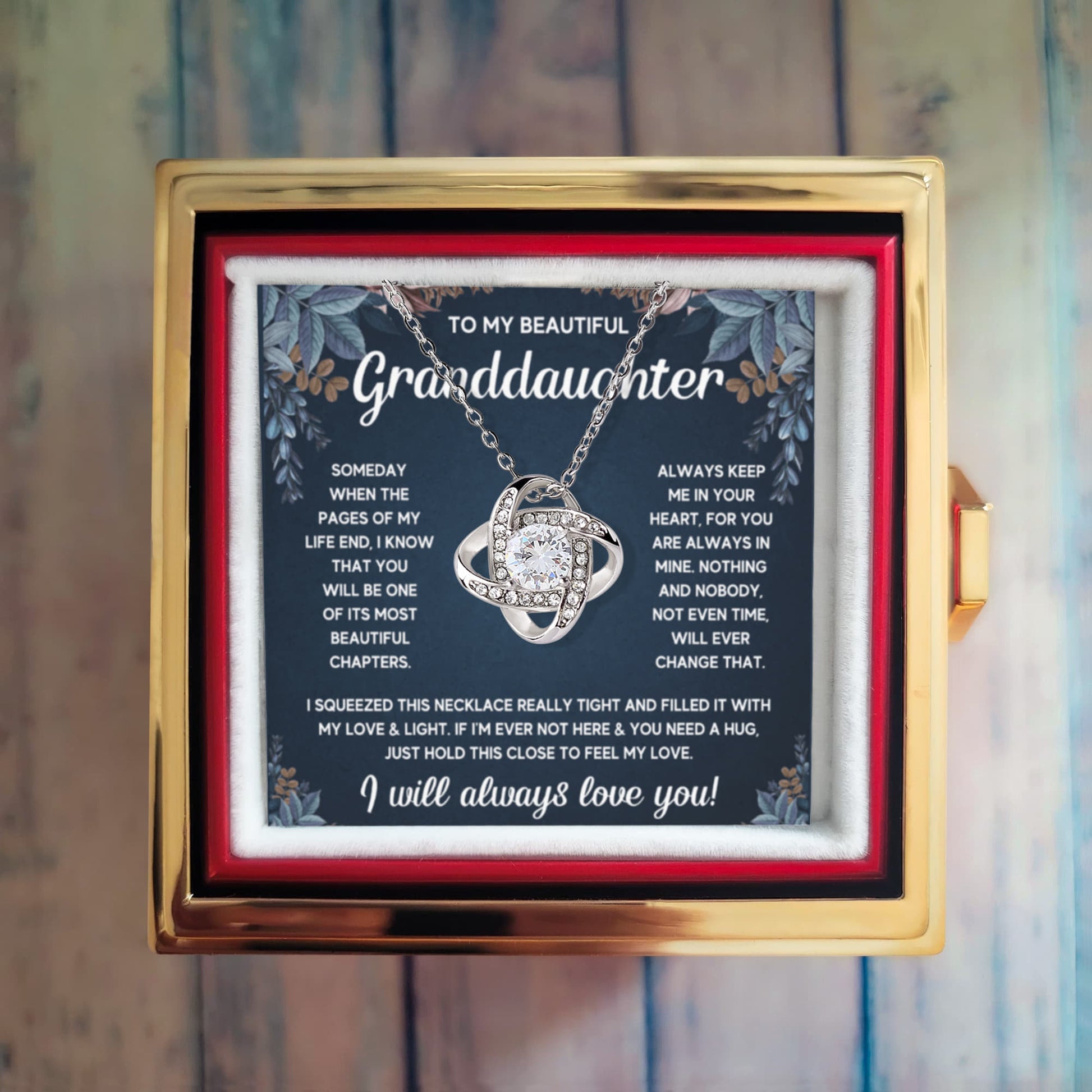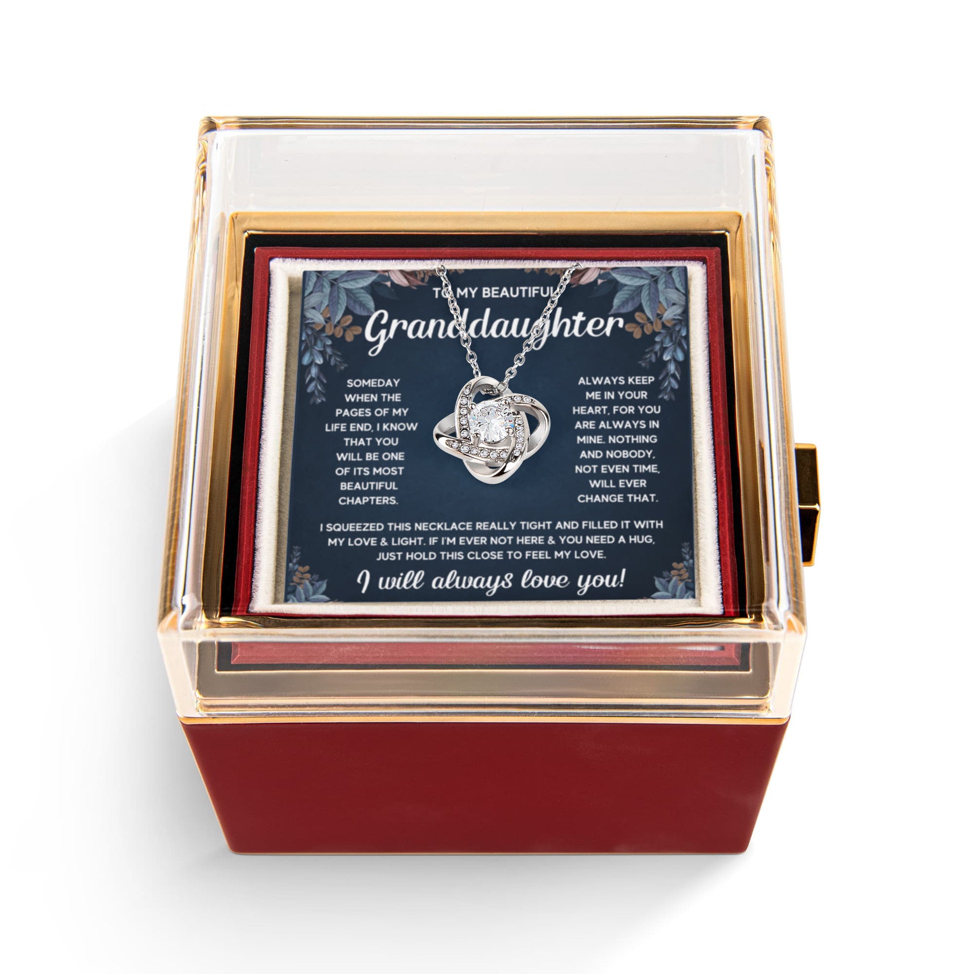 TO MY GRANDDAUGHTER SQUEEZED LOVE KNOT NECKLACE ROSE BOX GIFT SET