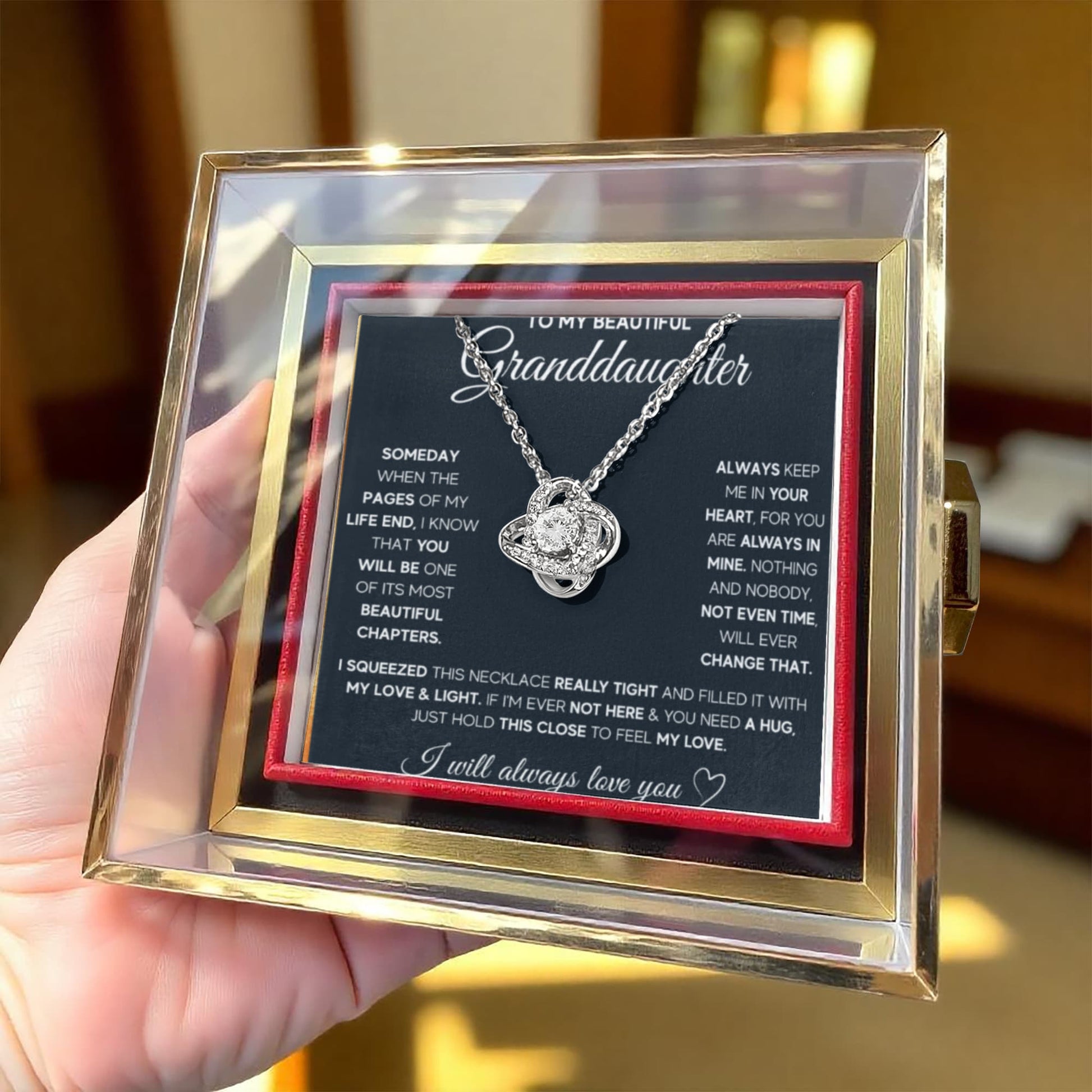 TO MY GRANDDAUGHTER SQUEEZED LOVE KNOT NECKLACE ROSE BOX GIFT SET
