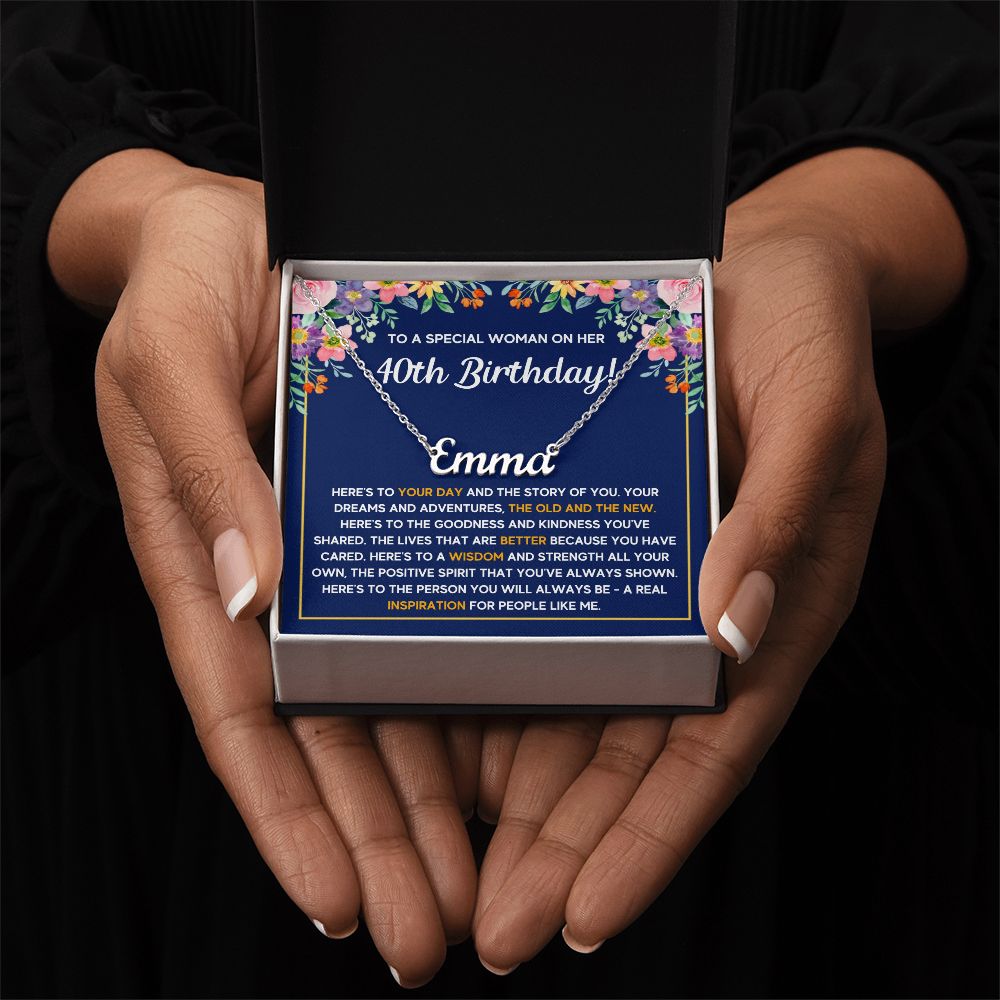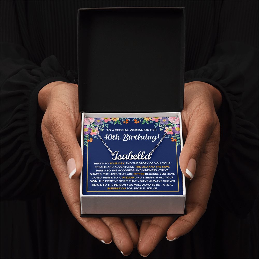 40TH BIRTHDAY PINK WISDOM CUSTOM NAME NECKLACE